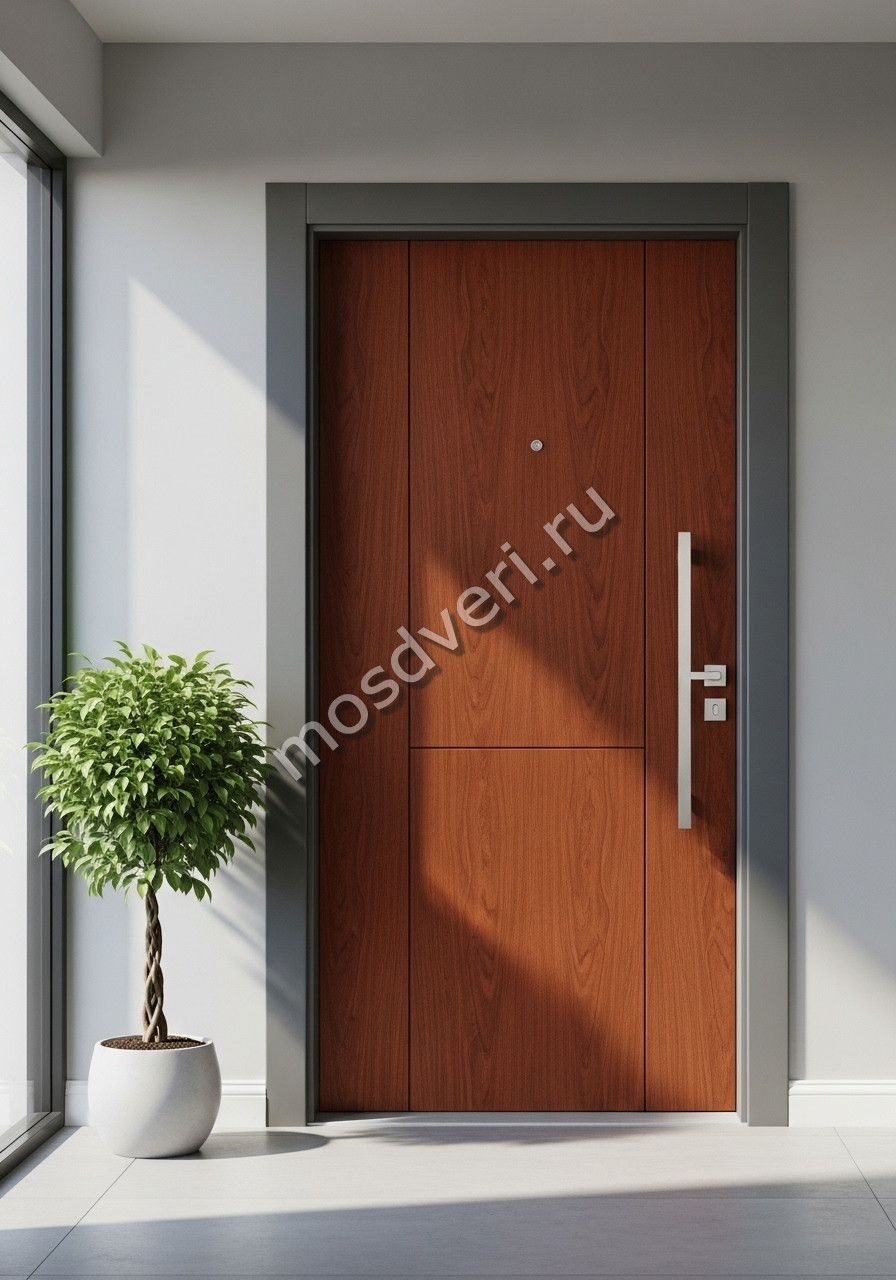 Дизайнерская входная дверь в квартиру коричневая — совмещает стильный внешний вид и превосходные защитные характеристики.