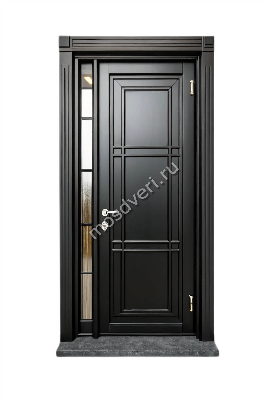 Красивая входная дверь с боковой фрамугой и узором КДД-014 — сочетает в себе современный дизайн и превосходные защитные характеристики.