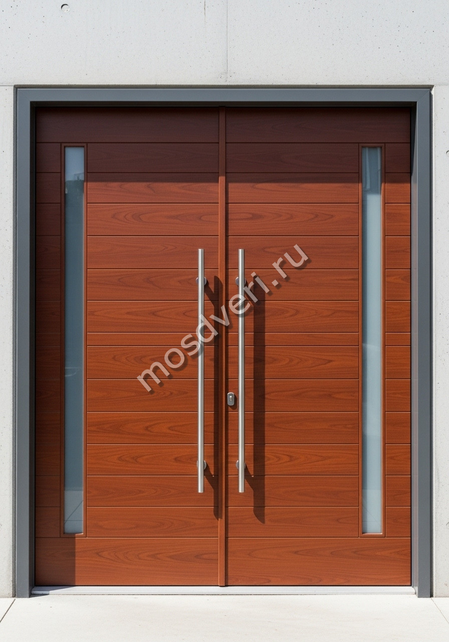 Входная дверь широкая в частный дом коричневая — совмещает современный дизайн и превосходные защитные характеристики.